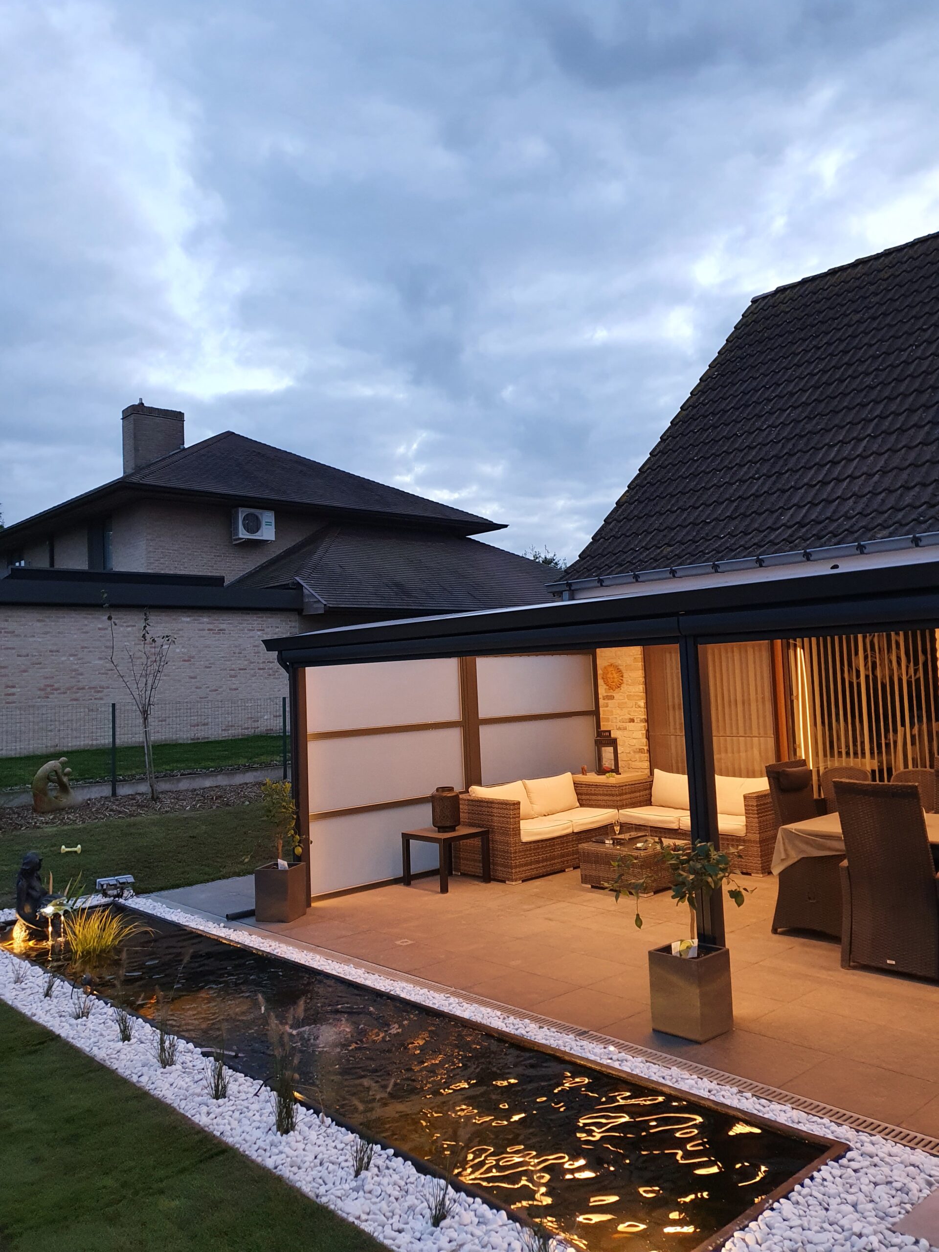 Eddy en Chantal vroegen ons een terrasoverkapping te maken aan hun huis.  Ze wilden een strak aflopend model, maar hadden een beperkte hoogte onder de dakgoot.Een AC systems terrasoverkapping kan reeds vanaf 2.5m hoogte onder de dakgoot!Omdat elk ontwerp uniek is en op maat gemaakt wordt, was het voor ons geen probleem langs een kant van de terrasoverkapping windscreens te plaatsen. Ze passen heel goed bij het geheel.Ga naar de landingspagina van Terrasoverkappingen >